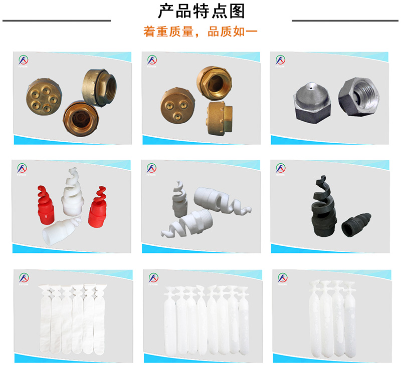 使用螺旋喷嘴成本低,螺旋喷嘴多采用注塑,浇铸,窑炉烧结等工艺,归根结底都是使用模具制造产品,比普通金属喷嘴成本低廉很多,而又容易生产大批量的货物。举个例子,如果生产十万个不锈钢螺旋喷嘴,从开模到完成约需要1个多月时间,加工呢?估计需要半年以上的时间。