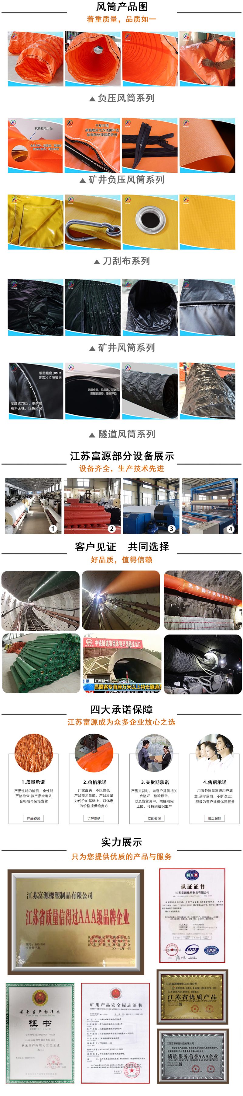 3、产品应贮存在通风良好的库房内,码置不得过高,以免影响使用质量,使用过的矿用风筒,应先冲洗凉干,然后再折叠存放,禁止与有损于橡胶和塑料品质的物质接触,避免阳光直射、雨淋,仓贮温度应在- 15°C~35"C之间,相对温度45-75%之间,并距热源1M以外。